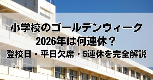 小学校のゴールデンウィーク2026年は、いつからいつまで休みになるのか気になりますよね。 2026年は前半に登校日があり、後半に5連休が集中する少し特徴的なカレンダーです。 本記事では、公立・私立小学校の日程、平日欠席の考え方、ラーケーション制度、さ…
